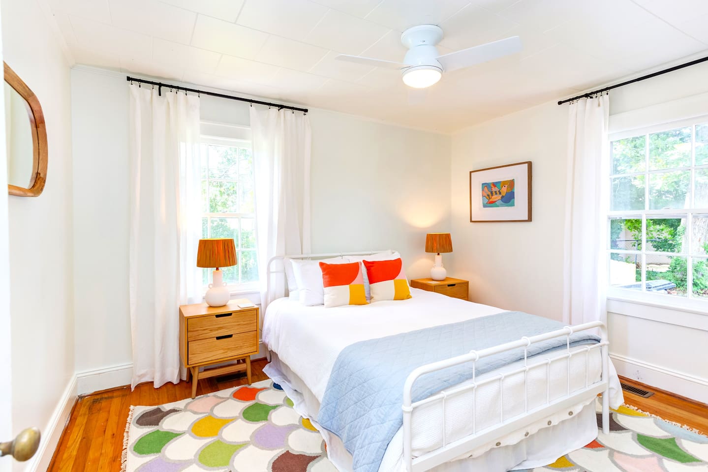 Our home features two fully equipped apartments, each with its own rocking chair front porch and inviting interiors. Whether you’re spending time together in the backyard, enjoying a quiet moment at the window side workspace, or relaxing indoors, every corner is designed for comfort, convenience and memorable experiences. <𝗯>★𝗬𝗼𝘂𝗿 𝗦𝘁𝗮𝘆 𝗜𝗻𝗰𝗹𝘂𝗱𝗲𝘀:</𝗯> 𝗦𝗹𝗲𝗲𝗽𝗶𝗻𝗴 𝗔𝗿𝗿𝗮𝗻𝗴𝗲𝗺𝗲𝗻𝘁𝘀: ☀ 4 Queen Beds with plush linens, blackout shades and extra pillows. ☀ Cozy, airy rooms designed for restful sleep. ☀ Pack ’n play and crib available for families with young children Living Room & Common Areas. ☀ Two separate dens with 65” UHD TVs and Amazon Prime Video. ☀ Amazon Echo Bluetooth sound system, books and board games. ☀ Dedicated workspace with ergonomic chair and fast Wi-Fi. 𝗞𝗶𝘁𝗰𝗵𝗲𝗻 & 𝗗𝗶𝗻𝗶𝗻𝗴: ☀ Fully equipped kitchens with stainless steel appliances, cookware, coffee maker and essentials. ☀ Indoor dining areas plus outdoor table for alfresco meals. 𝗘𝗻𝘁𝗲𝗿𝘁𝗮𝗶𝗻𝗺𝗲𝗻𝘁: ☀ Board games, books and family-friendly activities ☀ Cozy seating areas for reading, relaxing, or catching up with loved ones 𝗢𝘂𝘁𝗱𝗼𝗼𝗿 𝗔𝗺𝗲𝗻𝗶𝘁𝗶𝗲𝘀: ☀ Shared fenced backyard with fire pit and outdoor seating ☀ BBQ grill for alfresco cooking ☀ Rocking chair front porches and scenic park views ☀ Pet-friendly space for furry family members 𝗔𝗱𝗱𝗶𝘁𝗶𝗼𝗻𝗮𝗹 𝗛𝗶𝗴𝗵𝗹𝗶𝗴𝗵𝘁𝘀: ☀ Central air conditioning and heating for year-round comfort ☀ Home safety features including smoke & carbon monoxide alarms, first aid kit and fire extinguisher ☀ Free on-site and street parking. <𝗯>★☆ 𝗚𝘂𝗲𝘀𝘁 𝗔𝘁𝘁𝗿𝗮𝗰𝘁𝗶𝗼𝗻𝘀 𝗻𝗲𝗮𝗿𝗯𝘆 𝗶𝗻 𝗚𝗿𝗮𝗵𝗮𝗺, 𝗡𝗖</𝗯> ☀ Graham Historical Museum – 2 min drive ☀ Bill Cooke Park – 7 min drive ☀ Swepsonville River Park – 8 min drive ☀ Burlington City Park Amusement Area – 10 min drive ☀ Burlington Arboretum – 10 min drive ☀ Town and Country Nature Park – 10 min drive ☀ Alamance County Historical Museum – 12 min drive ☀ Mebane Historical Museum – 14 min drive ☀ Shallow Ford Natural Area – 17 min drive ☀ Animal Park at the Conservators Center – 28 min drive ☀ Children's Museum of Alamance County - 2 min drive ☀Alamance Battleground State Historic Site - 14 min drive ☀ Graham Regional Park - 9 min drive ☀ Sesquicentennial Park -3 min drive ☀ Harman Park - 2 min drive ☀ Pre-WWI Coca-Cola Mural - 2 min drive ☀ My Happy Place Mural - 2 min drive ☀ Love Always Wins Mural - 3 min drive ☀ Captain White House - 2 min drive ☀ Marshall Street Park - 4 min drive ☀Graham Regional Park - 9 min drive <𝗯>★☆ 𝗥𝗲𝘀𝘁𝗮𝘂𝗿𝗮𝗻𝘁𝘀 𝗡𝗲𝗮𝗿𝗯𝘆 𝗶𝗻 𝗚𝗿𝗮𝗵𝗮𝗺, 𝗡𝗖</𝗯> ☀ Rise & Shine Diner – 4 min drive ☀ TACONTENTO – 5 min drive ☀ Smokehouse at Steve's – 5 min drive ☀ Calentano Mexican Restaurant – 5 min drive ☀ Cook Out – 5 min drive ☀ El Carbonero – 5 min drive ☀ McDonald's – 6 min drive ☀ 5 Stars Restaurant – 6 min drive ☀ Mykonos Grill – 7 min drive ☀ Old Fogies – 8 min drive ☀ Red Crab – 12 min drive <𝗯>★☆ 𝗧𝗿𝗮𝗻𝘀𝗽𝗼𝗿𝘁𝗮𝘁𝗶𝗼𝗻 𝗡𝗲𝗮𝗿𝗯𝘆 𝗚𝗿𝗮𝗵𝗮𝗺, 𝗡𝗖</𝗯> ☀ Burlington- train station – 9 min drive ☀ Burlington Alamance Regional Airport – 11 min drive ☀ Piedmont Triad International Airport – 37 min drive </𝗯>★☆ 𝗛𝗼𝘀𝗽𝗶𝘁𝗮𝗹𝘀 𝗶𝗻 𝗚𝗿𝗮𝗵𝗮𝗺, 𝗡𝗖</𝗯> ☀ Cone Health South Graham Medical Center – 7 min drive ☀ Cone Health Alamance Regional – 13 min drive </𝗯>𝗨𝗽𝗰𝗼𝗺𝗶𝗻𝗴 𝗘𝘃𝗲𝗻𝘁𝘀 𝗶𝗻 𝗚𝗿𝗮𝗵𝗮𝗺, 𝗡𝗖</𝗯> ☀ Leftover Salmon — February 20, 2026. ☀ Trial By Fire: A Tribute to Journey — February 21, 2026. ☀ Coffee & Conversation with Palmer McIntyre & Hollis Oberlies — February 26, 2026. ☀ Vienna Boys Choir — February 27, 2026. ☀ Traditional Irish Folk Music — March 1–December 6, 2026. ☀ Elon Wind Ensemble — March 4, 2026. ☀ Art Feeds the Soul Quilt Show — March 5–7, 2026. ☀ Eric Church — March 6, 2026. ☀ Roots and Horizons Spring Dance Concert — March 6–8, 2026. ☀ Alamance County America 250 Kick-Off — March 7, 2026. ☀ Zeynep Tufekci — March 12, 2026. ☀ Joe Bonamassa — March 13, 2026. ☀ Downtown Graham St. Paddy's Bar Crawl 2026 — March 14, 2026. ☀ Dancing with The Stars Live — March 18, 2026. ☀ The Tommy Dorsey Orchestra — March 20, 2026.